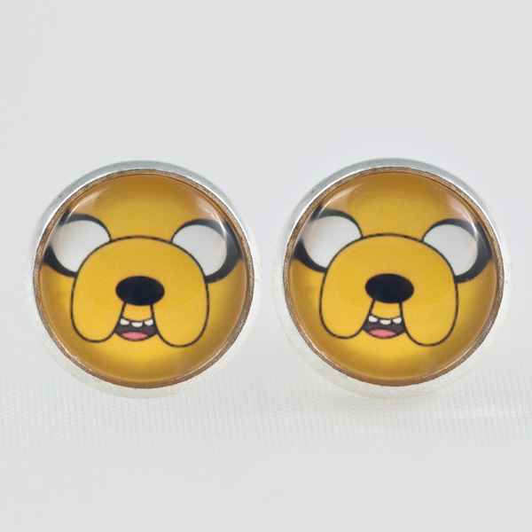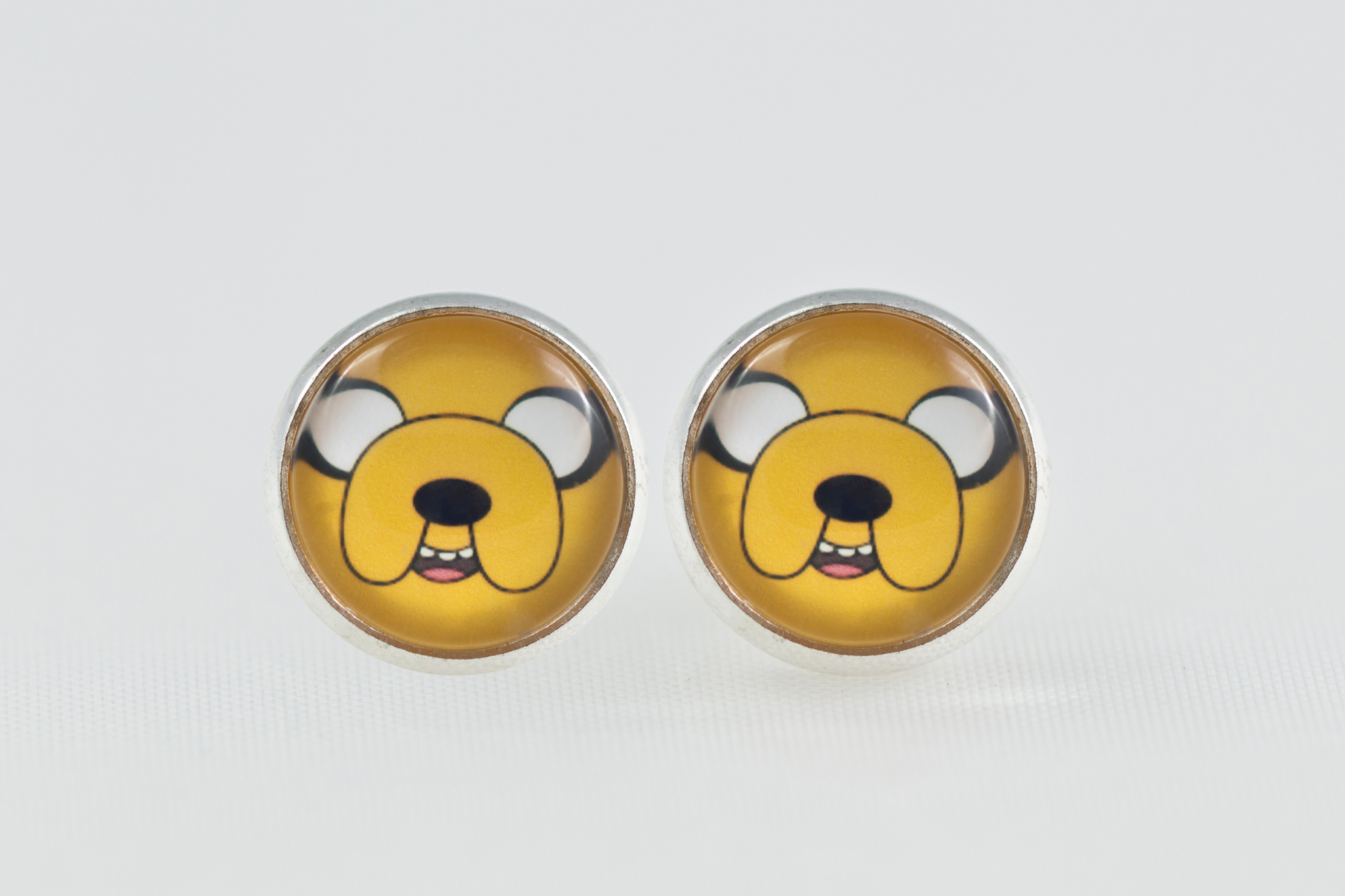 1 Pair Round stud earrings, with Jake the Dog figure under a magnifying glass dome.