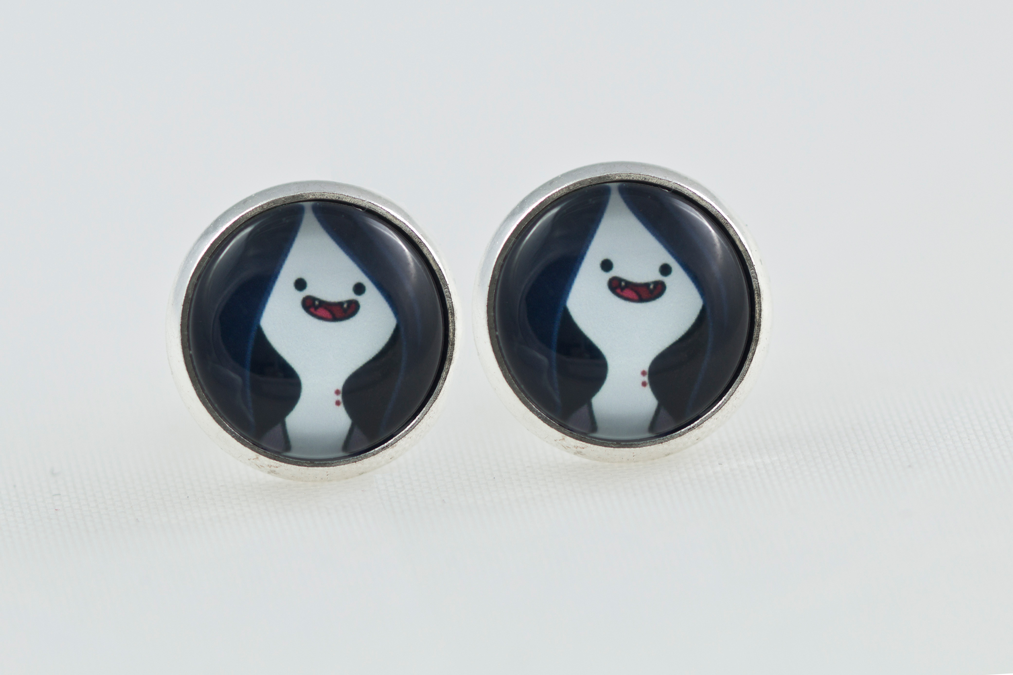 1 Pair Round stud earrings, with Marceline figure under a magnifying glass dome.