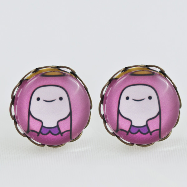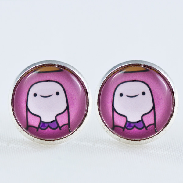 1 Pair Round stud earrings, with Princess Bubblegum figure under a magnifying glass dome.
