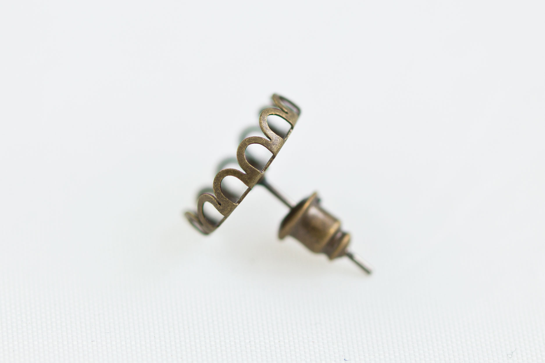 Antique bronze Waves Earrings with Scout Regime Logo figure under a magnifying glass dome.