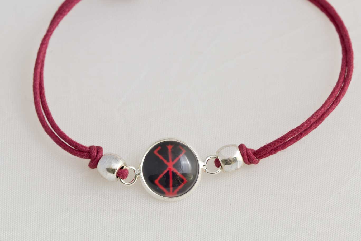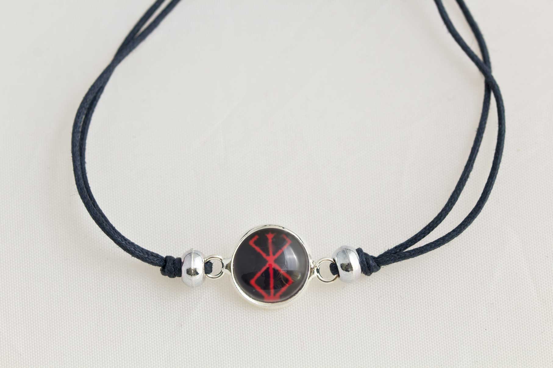 1 Pc Adjustable waxed cotton bracelet and metallic beads with Berserk Logo figure in center button under magnifying glass dome.