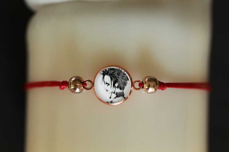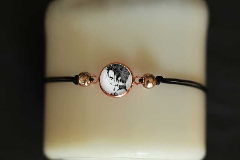 1 adjustable cord bracelet with Nana O. figure (manga Style) under a magnifying glass dome.
